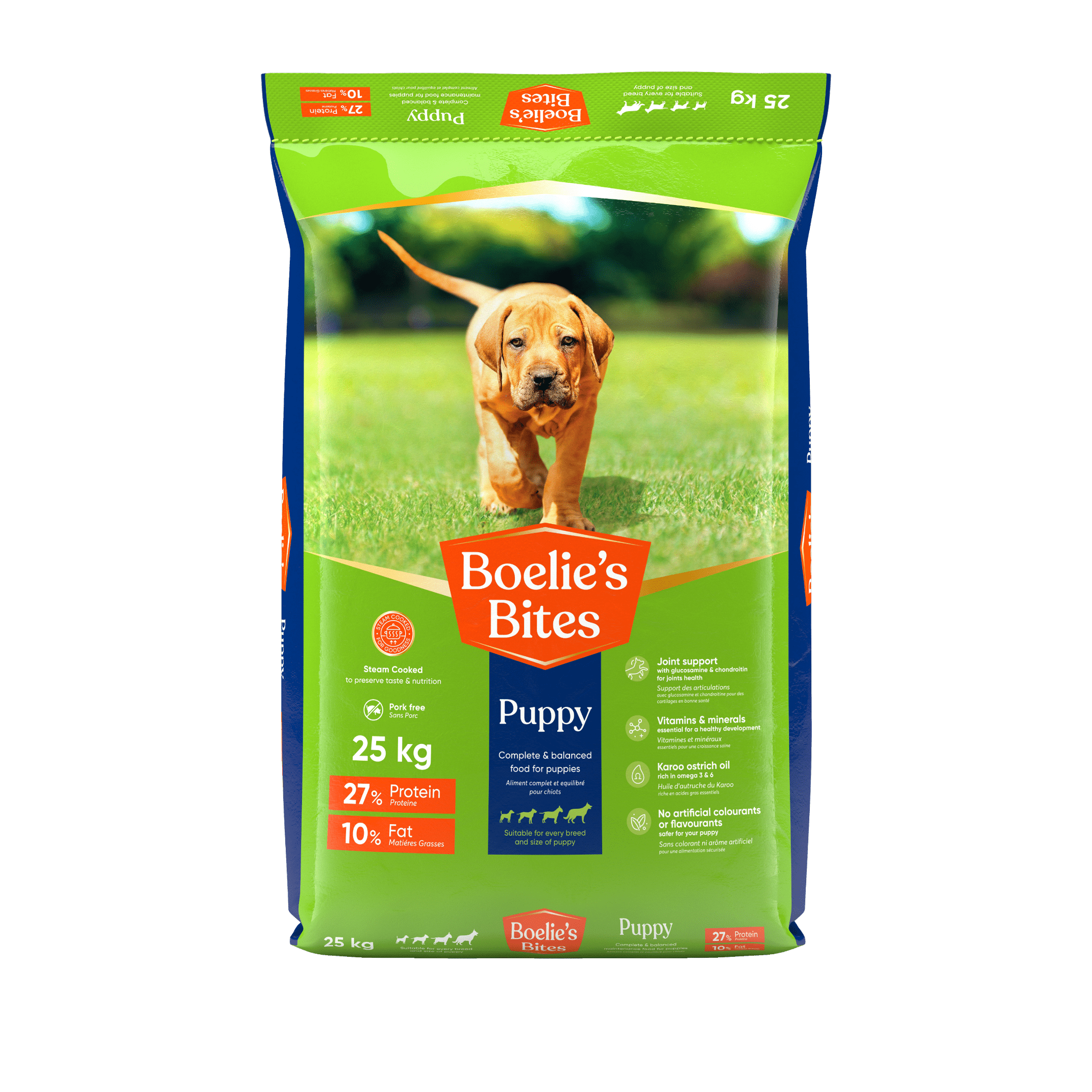 | Maize, dehydrated chicken protein, wheat bran, Karoo ostrich oil, natural flavourant, salt, vitamins and trace minerals. Colour of the kibbles may change due to natural variation of ingredients. | ||